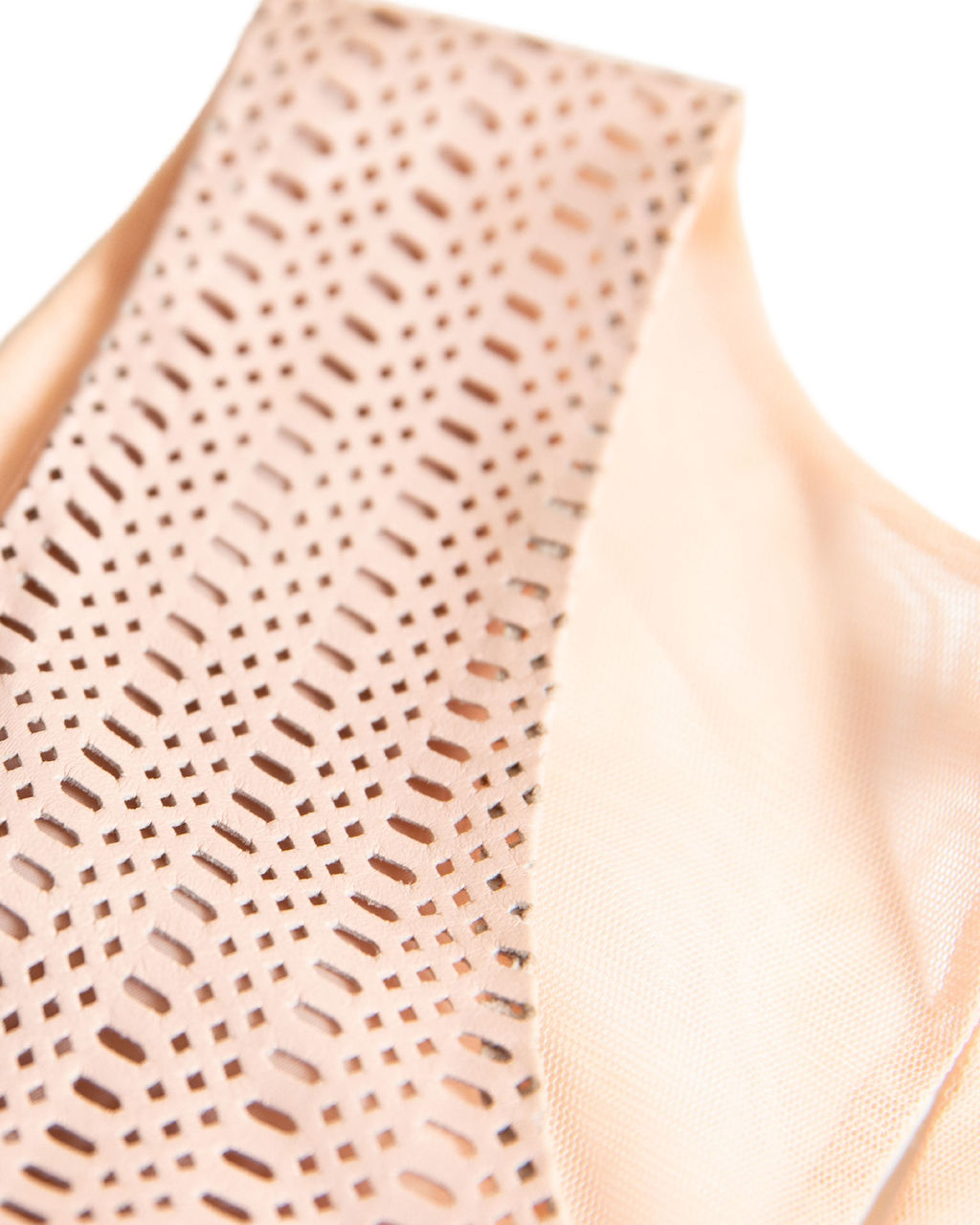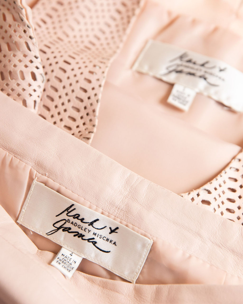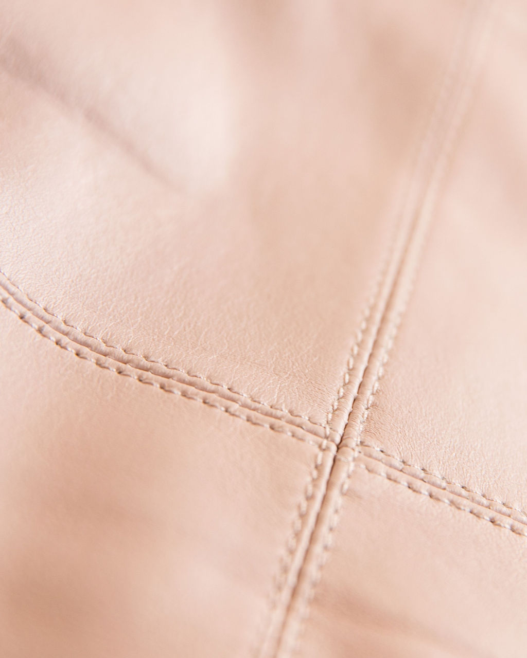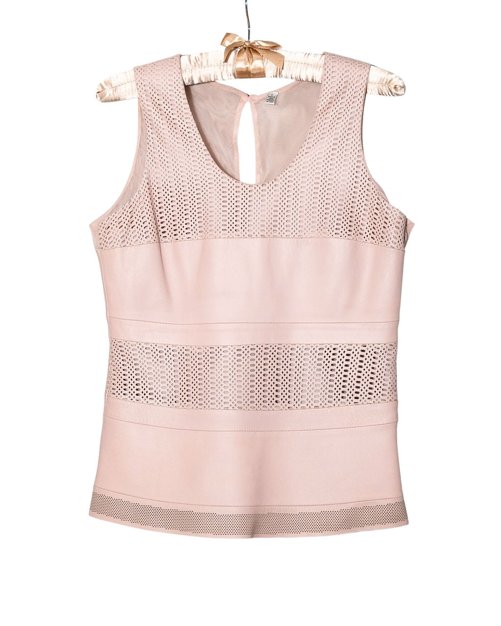 Leather Top & Skirt Set. A soft, blush or light pink color.