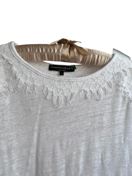 Classic white cotton long-sleeve t-shirt featuring a stylish design along the neckline and sleeves for a subtle yet trendy touch.