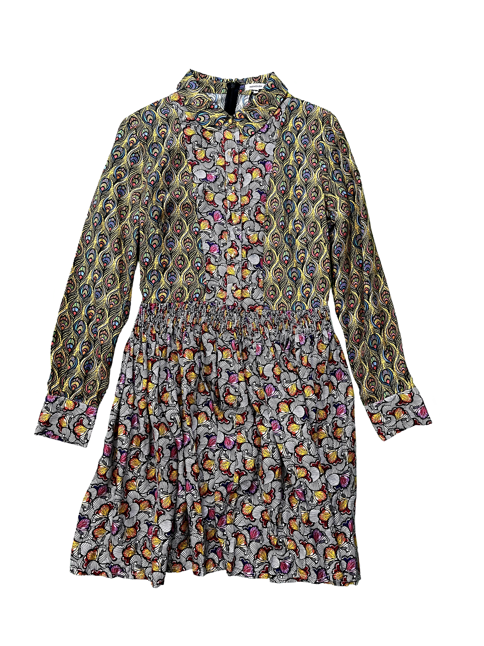 Multicolor casual short dress with long sleeves. Has a very light feeling when worn.