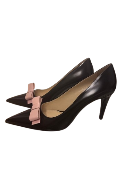Classic black stilettos (6cm heel) with a classic light pink ribbon.